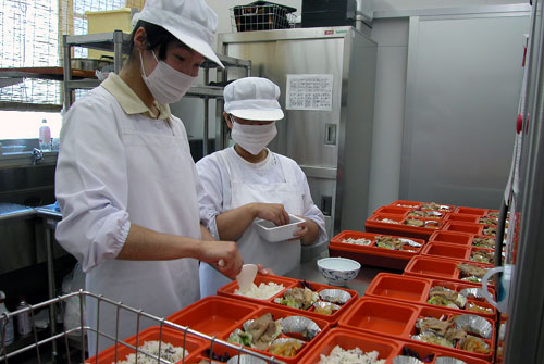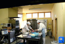 厨房 職員、利用者の給食作りにおいて 野菜を切ったり、揚げ物をしたり 厨房職員のサポートしています
