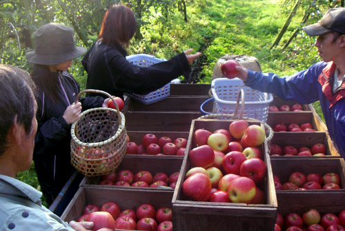 リンゴ栽培 平成22年から本格的に始まりました 銀河の里敷地内に100本と 付近のリンゴ畑で作業を行っています