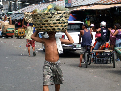 学校の授業が土曜日の午後と日曜日はオフだったため、オフの日はカメラ片手に1人でプラプラと散策して歩いた。セブ島には有名な観光名所があるが、端からそんな所には興味がなかった。観光客が見たい物を展示し、購入したい物を売り、感じたいことを感じさせる装飾された空間で、フィリピンで生きる人々の暮らしが見えるはずはない。というわけで、語学学校の先生に「非常に危険だけど、フィリピン人の生活を支えている場所だよ」と紹介してもらった、カルボン・マーケットという露店が乱雑に並ぶセブ島で1番大規模な青空市場に行った。 |
