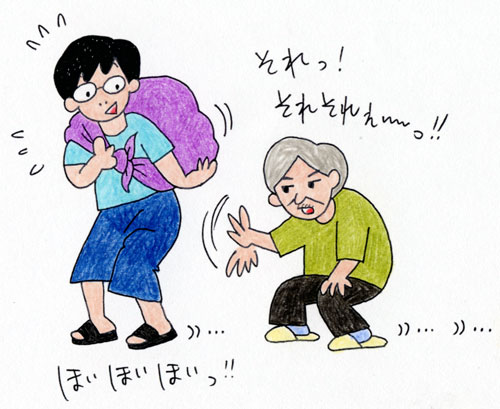 「ねっちゃ、ねっちゃ。おめさん、いっちゃ、いっちゃ」