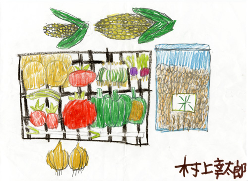 > 今月のイラスト 「里の畑から採れた野菜たち」