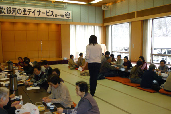 銀河の里では、花巻市より「生きがい活動支援通所事業」として委託を受け、その一環として温泉デイサービスを行っております。月に1度、第4水曜日に矢沢地域に住んでおられる65歳以上の方を対象に、大型バスで花巻市内の温泉に出かけており、利用者から好評をいただいておりました。