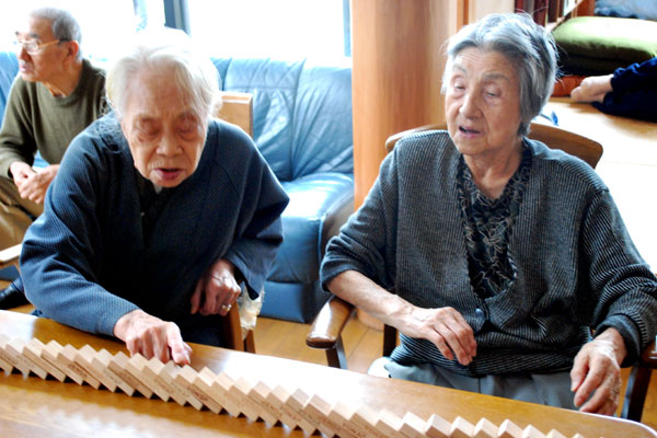 そのかたわらで「ちょっとここはダメだね。これやってみるか?〜 」とつぶやきながら、次から次へとやってのけるヨツ子さん。その様子を見て「あら、おばあちゃんお上手ね〜。どれどれ?」と相手をしっかり認めながらも、いくぶん義務感になっていくミサさん。
