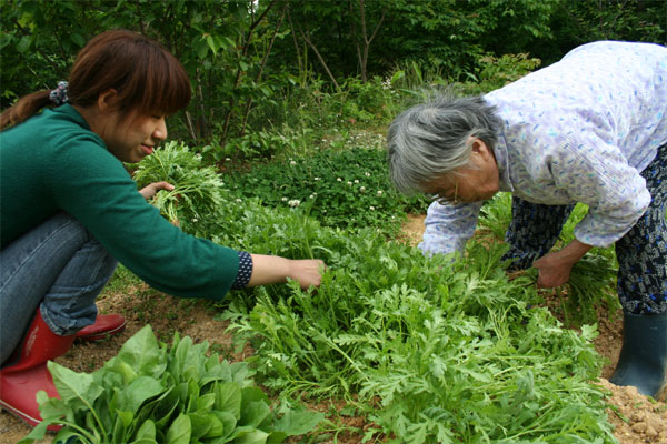 春菊取りに熱心な桃子さん