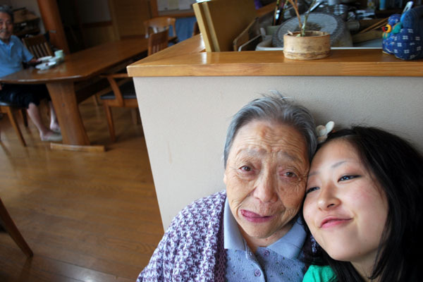朝からできるだけミヤさんの傍から離れずに居ようと決め、ミヤさんに私の“存在”を感じてもらうようにする。蒸し暑いのもなんのその和室の布団に抱き合って横になる。ミヤさんは、私のお腹をたたきながらリズムを刻み、しっかりと私の存在を感じていてくれているようだった。急に「オラの家さも泊りさ来〜」と頭を近づけてくるミヤさん。「いいの?」と返すと「いいよ〜。いとこ同士だもの、いいんだ〜!」と言って笑う