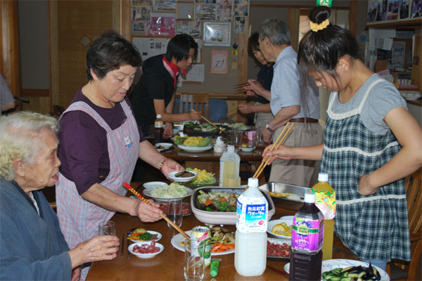 ある日、そんな私を変えてくれるできごとがあった。武雄さん(仮名)がいつもお世話になっているお礼にと飲み物を買ってくれたのがきっかけで焼き肉パーティが行われることになった。職員も盛り上がり、利用者もいつも以上に食が進む。そんな中テラスにいたフクさん(仮名)だけは飲み物にも食べ物にもなかなか手をつけなかった。この企画のきっかけが武雄さんだということをわかっているかのようにも思えた。私は、そんなフクさんのことが気になりつつも近よって語りかける勇気はなかった。自分に何ができるのかまるで解らなかったからだ。片付けをしながらずっと気になっていた。