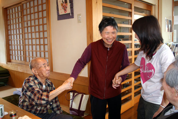 先日朝の送迎でまりえさんを乗せたあと、ボランティアさんを迎えに行き、家の前でしばらく待っていたとき、助手席に乗っていたまりえさんが私の指の絆創膏をじっと見て、うなずきながら、「いたい、いたい」と話しかけてきた。そして、私の手をとり、私の両手を包み込むように自分の手をそっとのせたので驚いた。このとき私はまりえさんという人間に触れた気がした。私の指の小さな傷をいたわってくれるまりえさんの優しさを感じ、こころがあったかくなった。しばらくまりえさんと見つめあい「ありがとう」と言うと、ニコニコと笑顔のまりえさんだった。