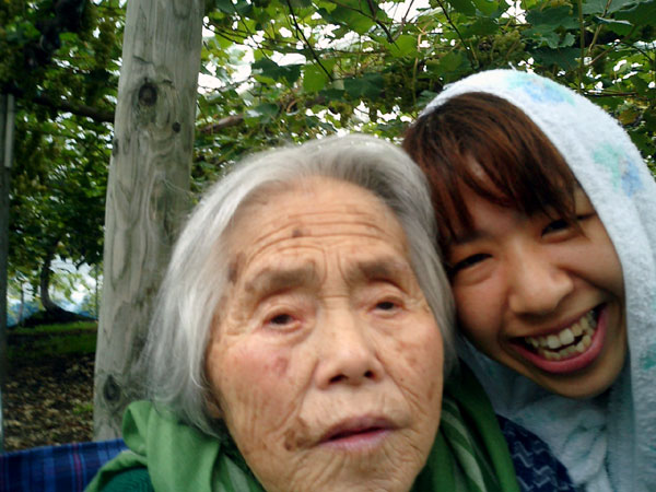 ぶどう狩り記念ショット いっぺぇ取れだなぁ