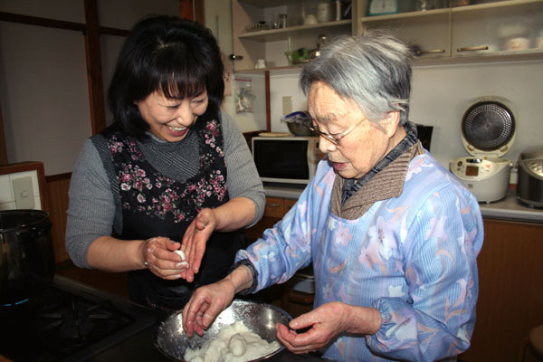 数日後、好評だったのでまた作ってみようとキッチンに立つと、「団子つぐるのが? ほんとにまんまでつぐるってが?」と桃子さん(仮名)が興味津々で近づいてきた。「てつだってけで」と言うと「でぎるべか」と言いながら、もうすでにエプロンを手にしている。