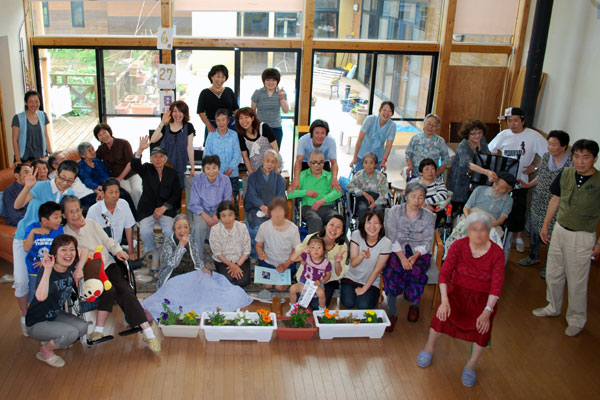 昼食後、大人数だったので全員ではなかったが、外に出てプランターや花壇に花の苗を植えた。ここでも豊子さんのひ孫さん大活躍。「僕もやりたい」と花を植える姿は利用者達の目にとまり、「かわいいね、かわいいね」とみんな微笑んでいた。