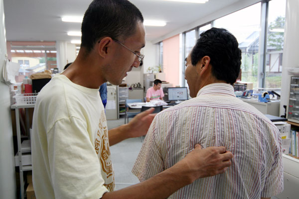 里に住むのりちゃん(仮名)は、「どう?いい?まる?」と銀河の里の全部署を回り歩いて、お気に入りのスタッフに質問する。自分の顔色がどうなのか聞いているのだ。ワークステージの仕事の前後に特養、グループホーム、デイサービス、事務所をくまなく渡り歩いて、さっき事務所にいたかと思うと特養ホームに来ていたり、のりちゃんのテリトリーは広くて、すばやい。スタッフの勤務表を熟知しており、今日は誰がどこの勤務かよくわかっている。もしかして里のスタッフよりも全体をよく見ているのかもしれない。