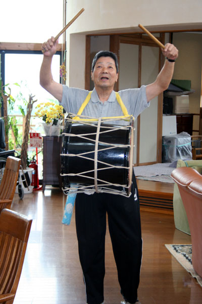 7月から新しくデイサービスの利用を始めた義男さん(仮名)。まだ2ヶ月ほどだが、すでにムードメーカーで、中心的な存在だ。大きな体に、トレードマークのぽっこりおなかをぽんぽん叩きながら「妊娠8ヶ月!おぎゃーおぎゃーおぎゃー」とみんなを笑わせてくれる。ピアノ演奏に合わせて腹踊りやユーモア溢れる創作ダンスをしてみたり、ひょっとこの真似をしながら、太鼓の音に乗って畠山さんと踊ったり場を盛り上げてくれる。剛さん(仮名)が「風呂まだがー!?」と脱衣場のドアを開けそうになったとき、藤井さんがあわてて「まだだよ、女の人だよ!」と必死に声を張り上げていたとき、浴槽にゆったりつかりながら「女の人よ〜」と義男さんの声が聞こえてきて大笑いになった。スタッフの心に、ふっと余裕を持たせてくれる存在だ。