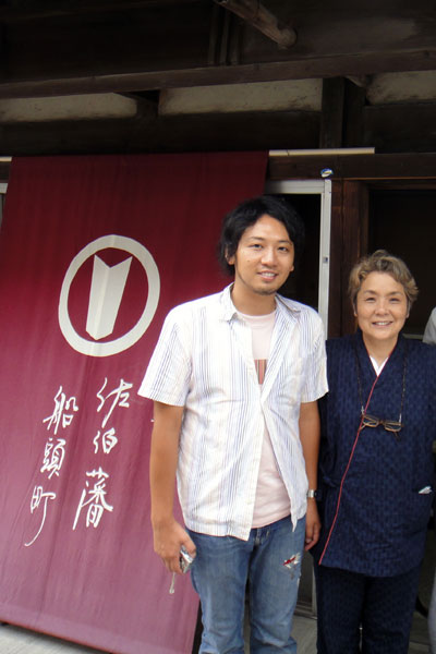 奥さんの浅利妙峰さんと「糀屋本店」の前で