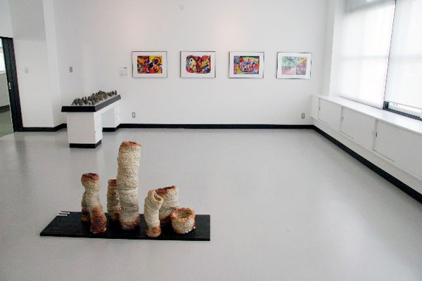 美術館内 利用者の作品が並ぶ
