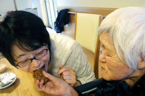 ある日の昼下がり、テーブルを囲んでセイ子さん(仮名)と歌を歌う。結構な音痴で、おまけにだみ声だが、高らかに歌ってくれるセイ子さんとすごす時間は至福の時だ。こちらの目をじっと見て、ときにリードして、ときに後から、一緒に歌ってくれる。セイ子さんのおおらかさにすっぽりと包まれているような感じになる。