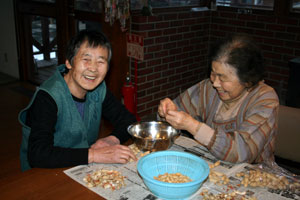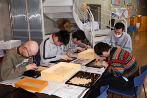 大豆選別を行う惣菜班