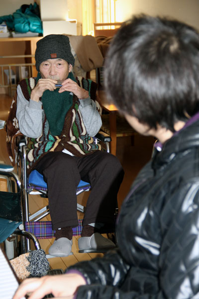 震災後のユニット内に、ピアノとハーモニカが鳴り響く