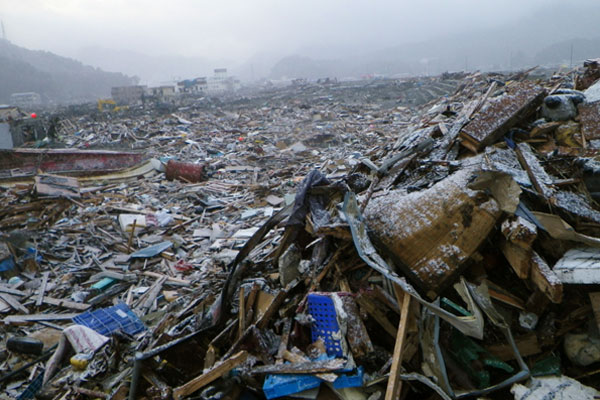 沿岸部の壊滅的な被害にただただ呆然と眺める