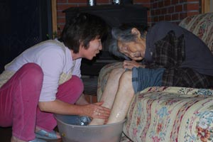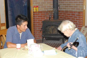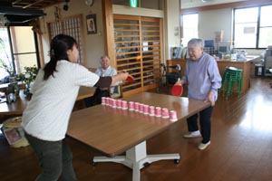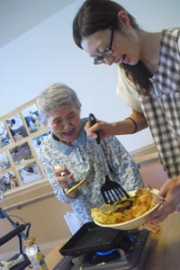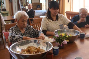 一緒に芋の皮むき