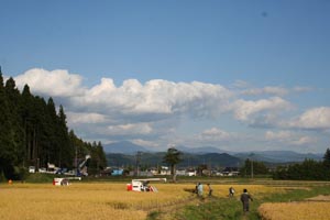 稲刈りのこびる届けにて