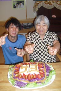 トマトやきゅうり、キャベツのヘルシーケーキでお祝い