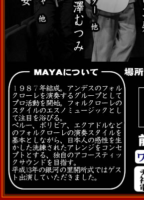 今年は平成22年11月14日(日)にフォルクローレバンド「MAYA(マヤ)」によるコンサートを開催いたします!