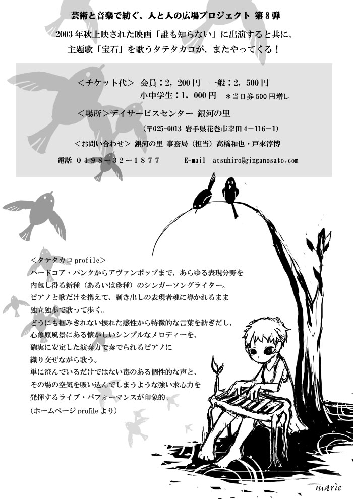 主題歌「宝石」を歌うタテタカコが、またやってくる!
