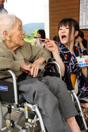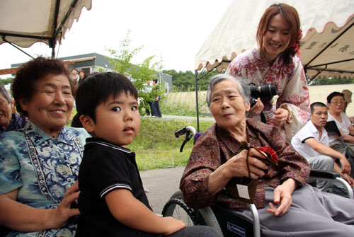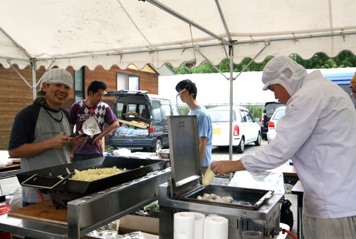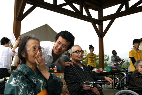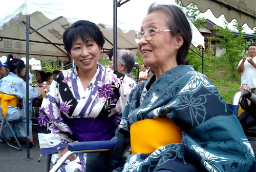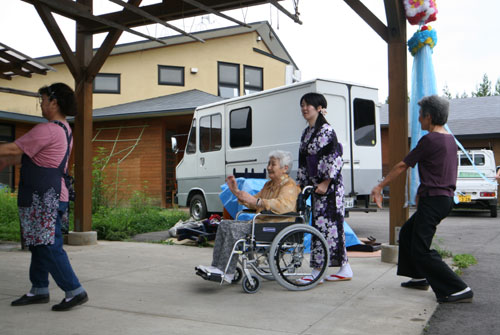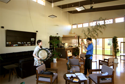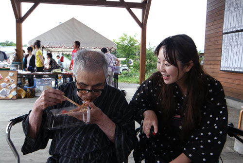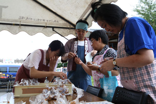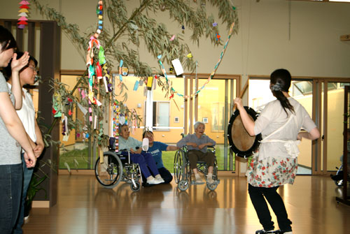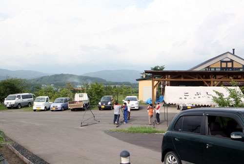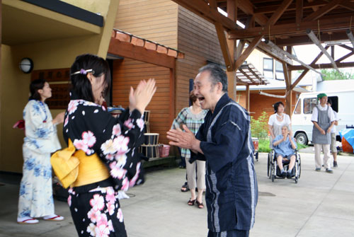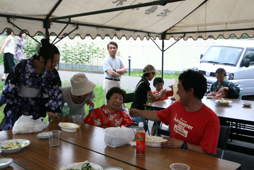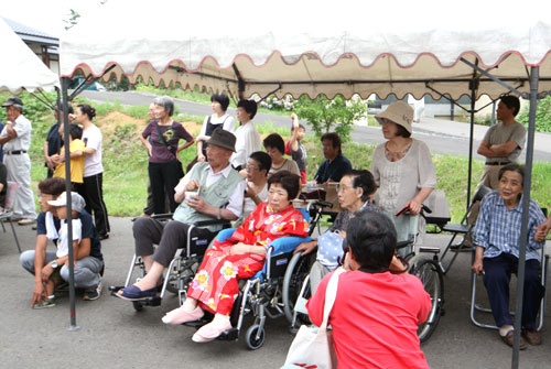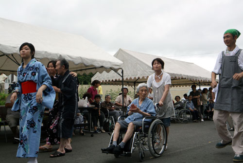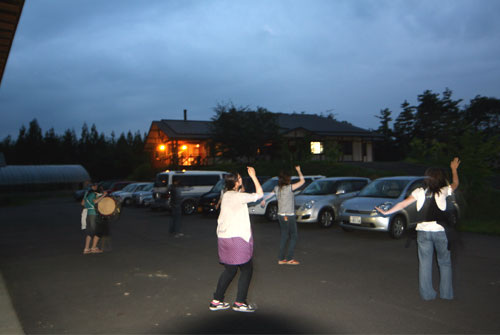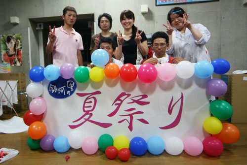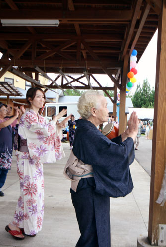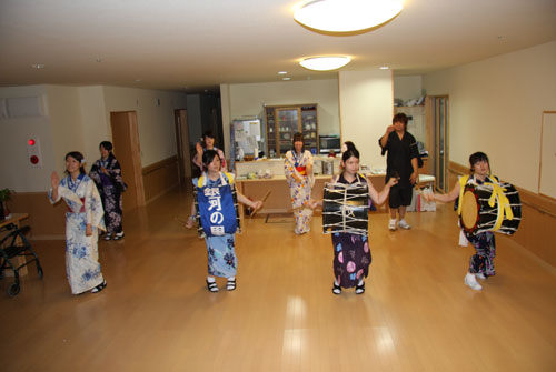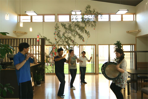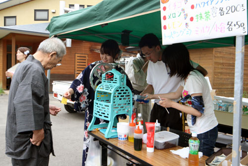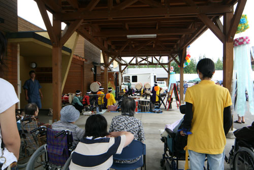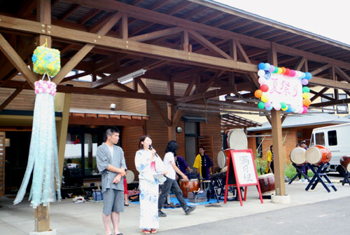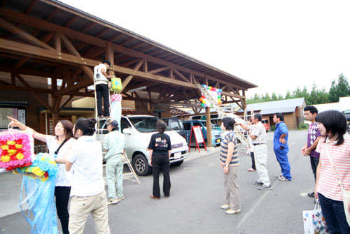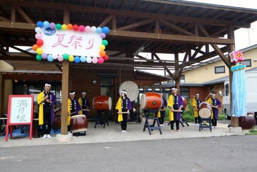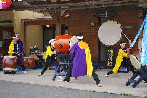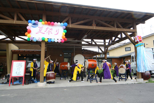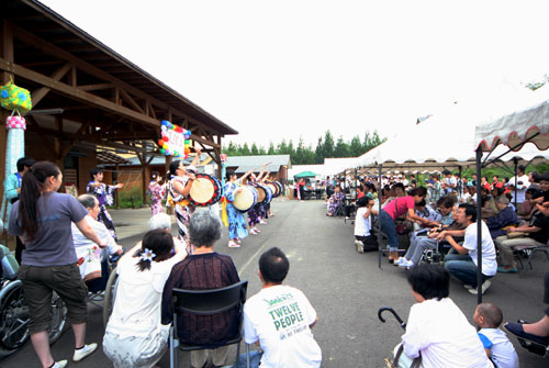 2009年は『銀河の里 バザー in 夏祭り』と題して、東和町の劇団主賓・星鴉宮(ほしがらすみや)さん率いる「満月組」による迫力の和太鼓演舞と、銀河の里職員らで結成された「銀河さんさ隊」によるさんさ踊りで盛り上がりました。
