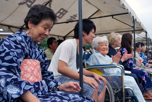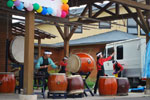 開始前の小雨も太鼓の音と共に晴天に変わり、約400人ものお客様にご来場いただきました。